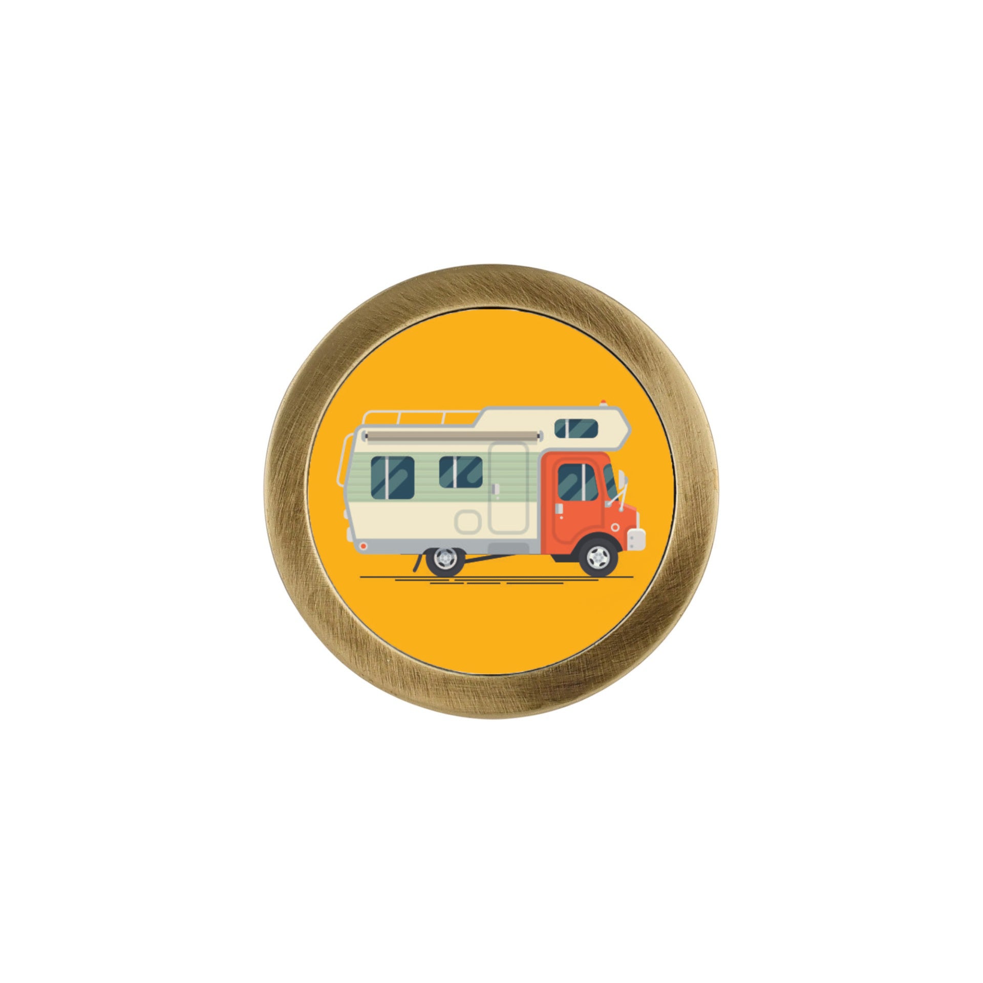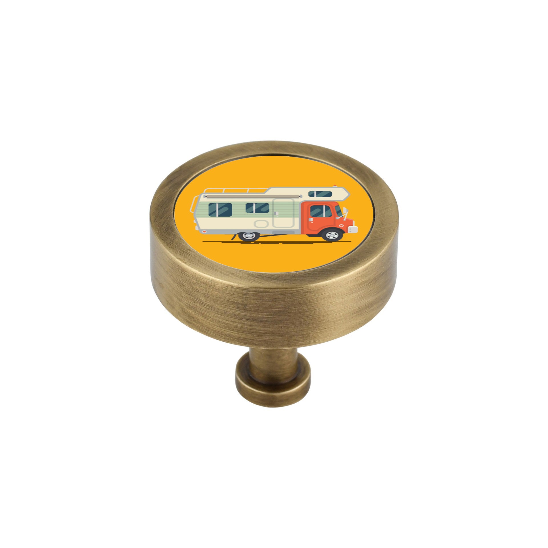 This OneKnob comes with a vintage camper print on a yellow background. A great way to add color and excitement to a kids room.